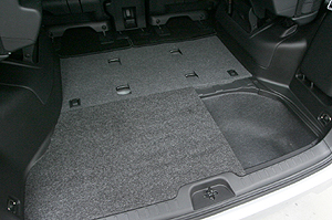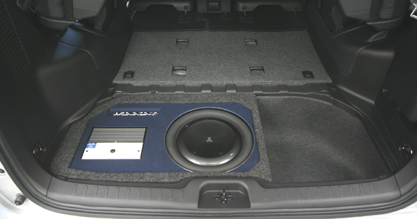 ラゲッジスペースにアンプ、サブウーハーをインストール、荷物スペースに影響のないように配慮した取付です。