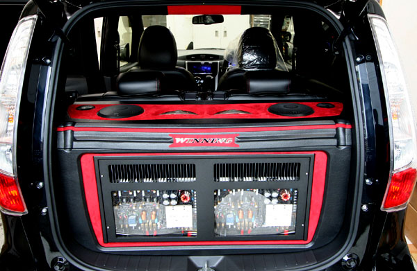 ラゲッジスペースにカスタムインストール、アンプ、リアスピーカー、サブウーハーをそれぞれ配置!