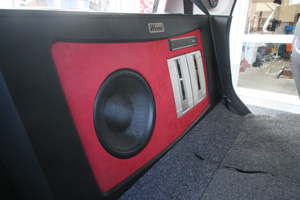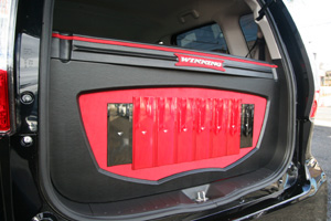 ラゲッジスペースにカスタムインストール、アンプ、プロセッサー、リアスピーカー、サブウーハーなど、、、、インパクト有りな取付です。