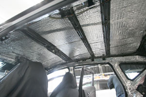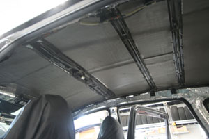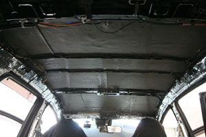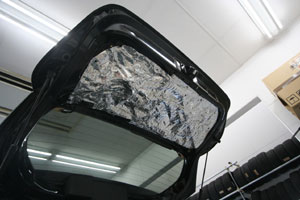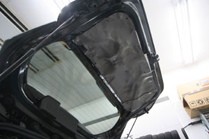 天井、ピラー、リアゲートへデッドニング。すでにフロントドアやトランク等をデッドニングしておりましたが、今回は新たに天井等へ追加施工をさせて頂きました。
