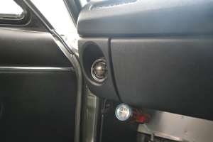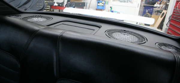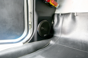フルレストアされた雰囲気を損なわないように、ラゲッジルームにアンプ、リアトレーをワンオフ製作、エアコン吹き出しを加工してツイーター、フロント足下のキック位置ミッドスピーカーをそれぞれインストールしています。
