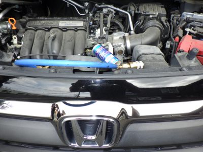 バンパーから遠くエンジンルームに体を入れての作業