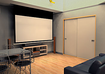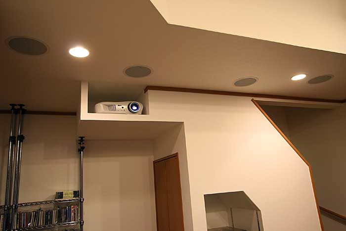 1Fリビングルームにシアターリフォームにより、100インチスクリーン、7.1chシステムのホームシアターをインストール。 ホームシアターファイル42号掲載