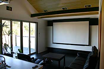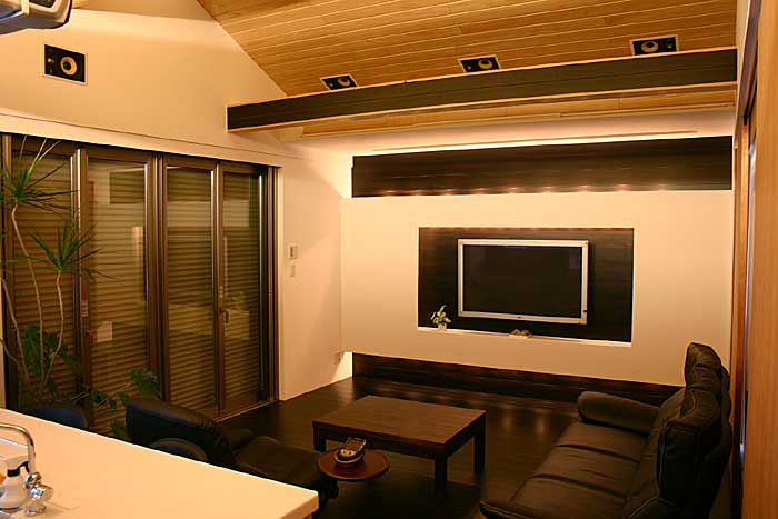 リフォームを機会に、2階のリビング/ダイニングにプラズマ、スクリーン、プロジェクター、7.1chスピーカーなどをインストール。