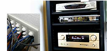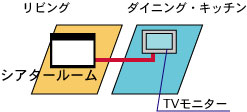 機材の納めるラック裏に配線を集中させ、シアタールーム以外のダイニングのTVでも楽しめます。