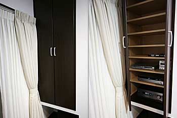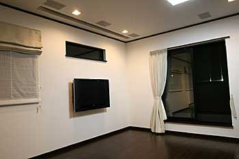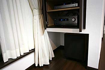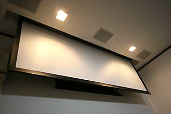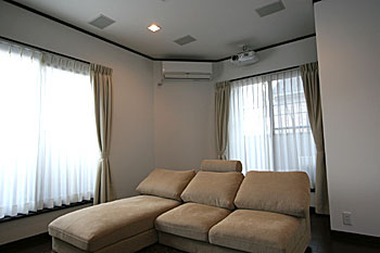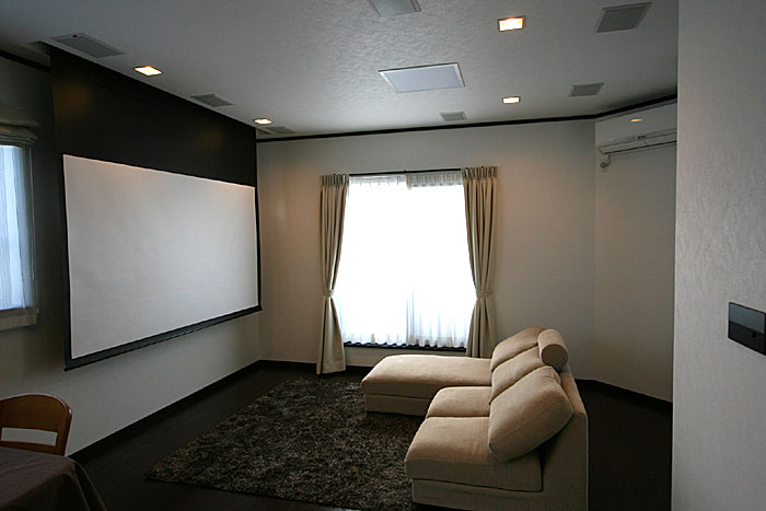 新築の2Fリビングにプラズマモニター、スクリーン、プロジェクター、7.1chスピーカーシステムなどをインストール。 ホームシアターファイル45号掲載