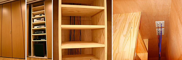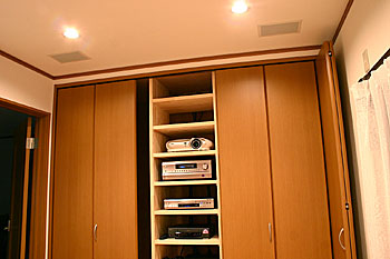 新築1階にシアタールームを設置。すべてを隠すインウォール型 「プロジェクター、電動スクリーン、5.1chスピーカー、ゾーン2スピーカー、AVアンプ、DVDプレイヤー等のインストール」 ホームシアター33号掲載