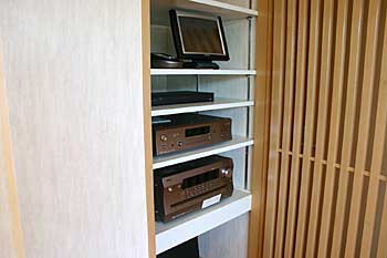 新築の2階に100インチスクリーン、7.1chスピーカー、プロジェクターなどをインストール。 1階リビングルームにはプラズマシアター ホームシアターファイル44号掲載