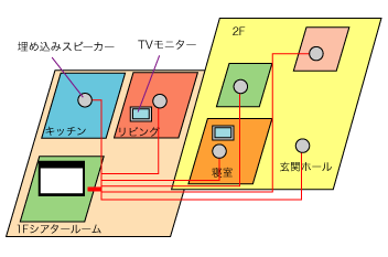 新築の1階にホームシアターをインストール。 その他に各部屋でも映像と音楽が楽しめるマルチゾーンプレイヤーもインストールしています。 ホームシアター39号掲載