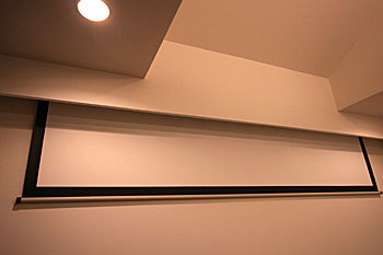 2Fのユーティリティースペースにホームシアターをインストール。 スクリーンサイズは120インチ、電動タイプで天井に収納されています。