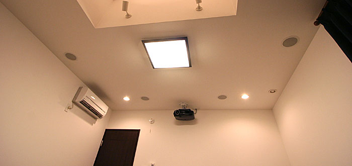 プロジェククターは天吊り設置、リアスピーカー天井に埋込みしております。
