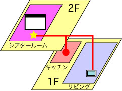 その他にマルチルーム配信として、キッチンにBGM用スピーカーをインストール。リビングのTVモニターに映像、音楽を配信。