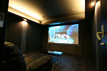 新築1Fにシアター専用ルームをデザイン。100インチスクリーン、プロジェクター、7.1chスピーカ-、iPadコントロールなどをインストール。
