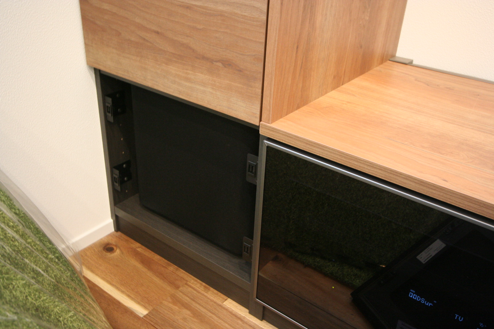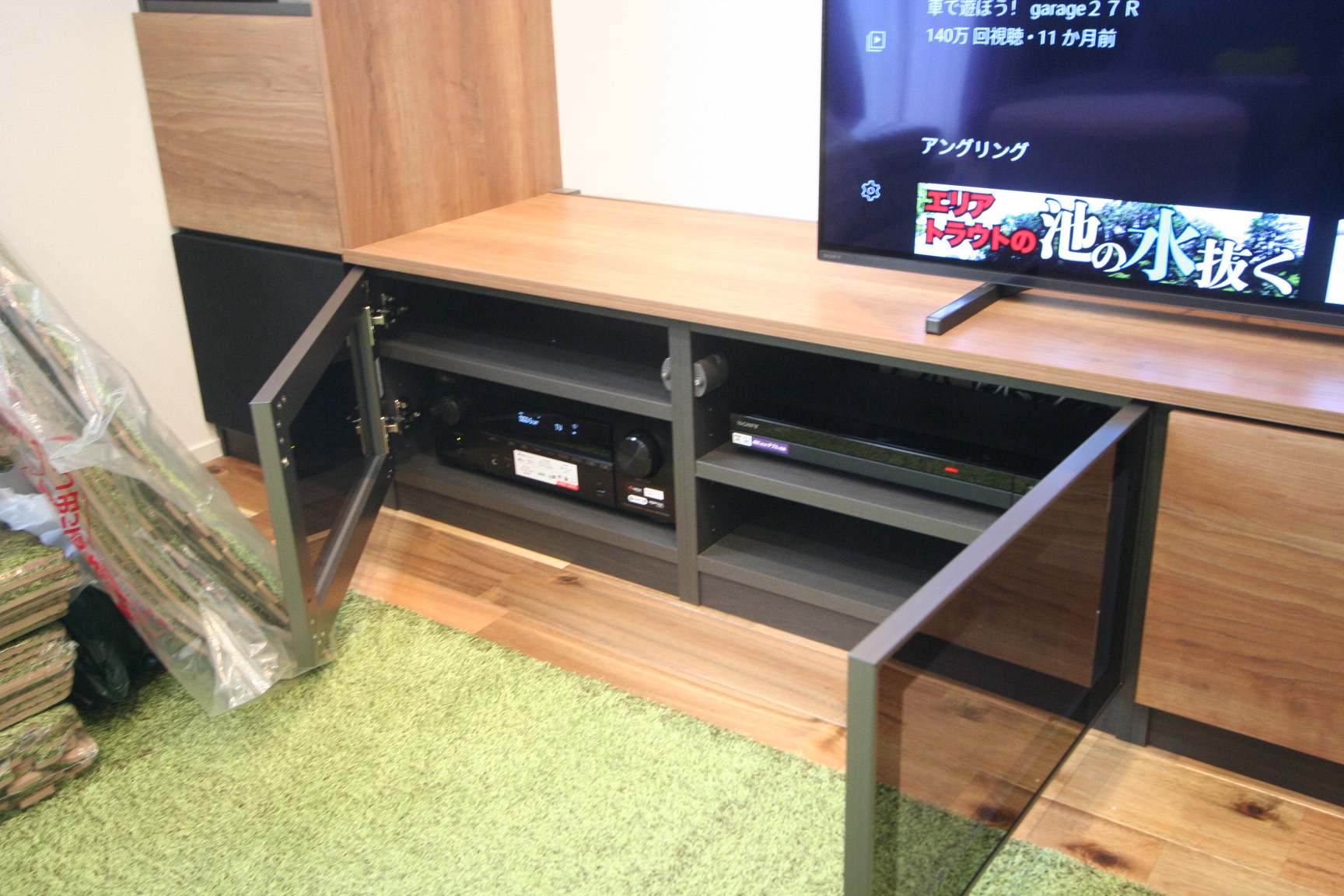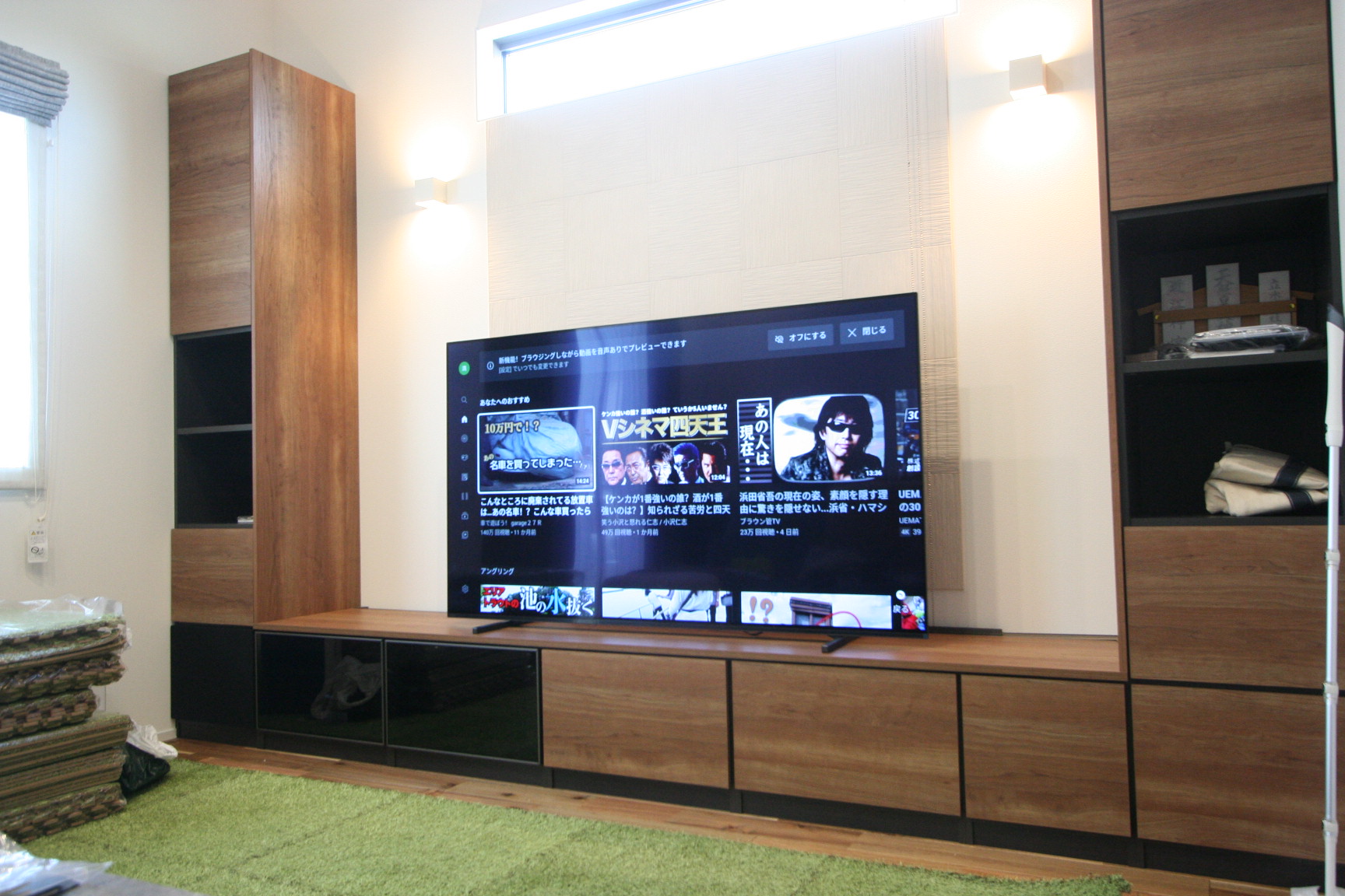 新築のリビングルームへ埋め込みスピーカーを利用して5.1chテレビシアターシステムをインストール TVと各機材はHDMIリンクを利用してますので、TVリモコン操作ですべて快適に楽しめます。