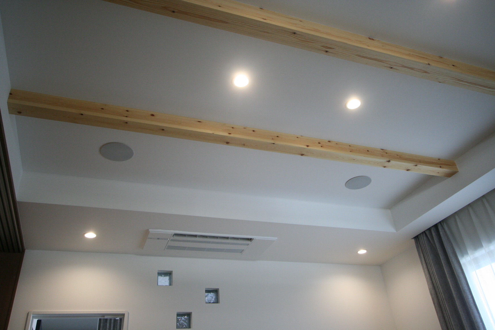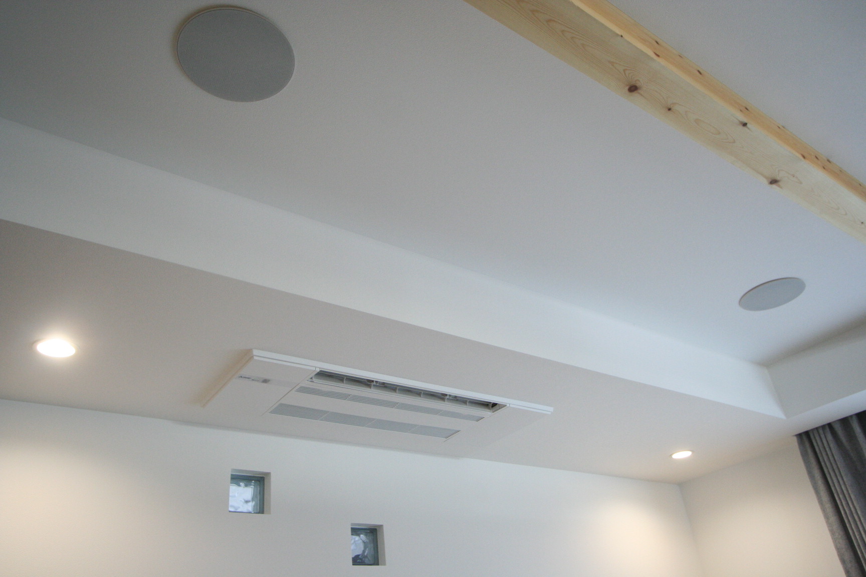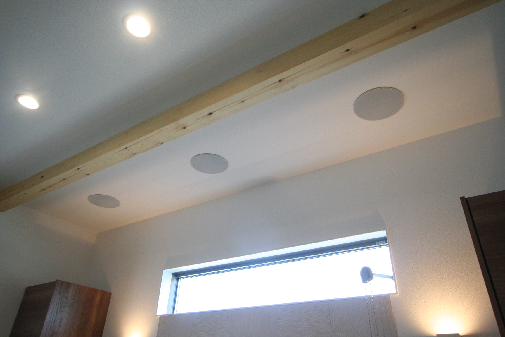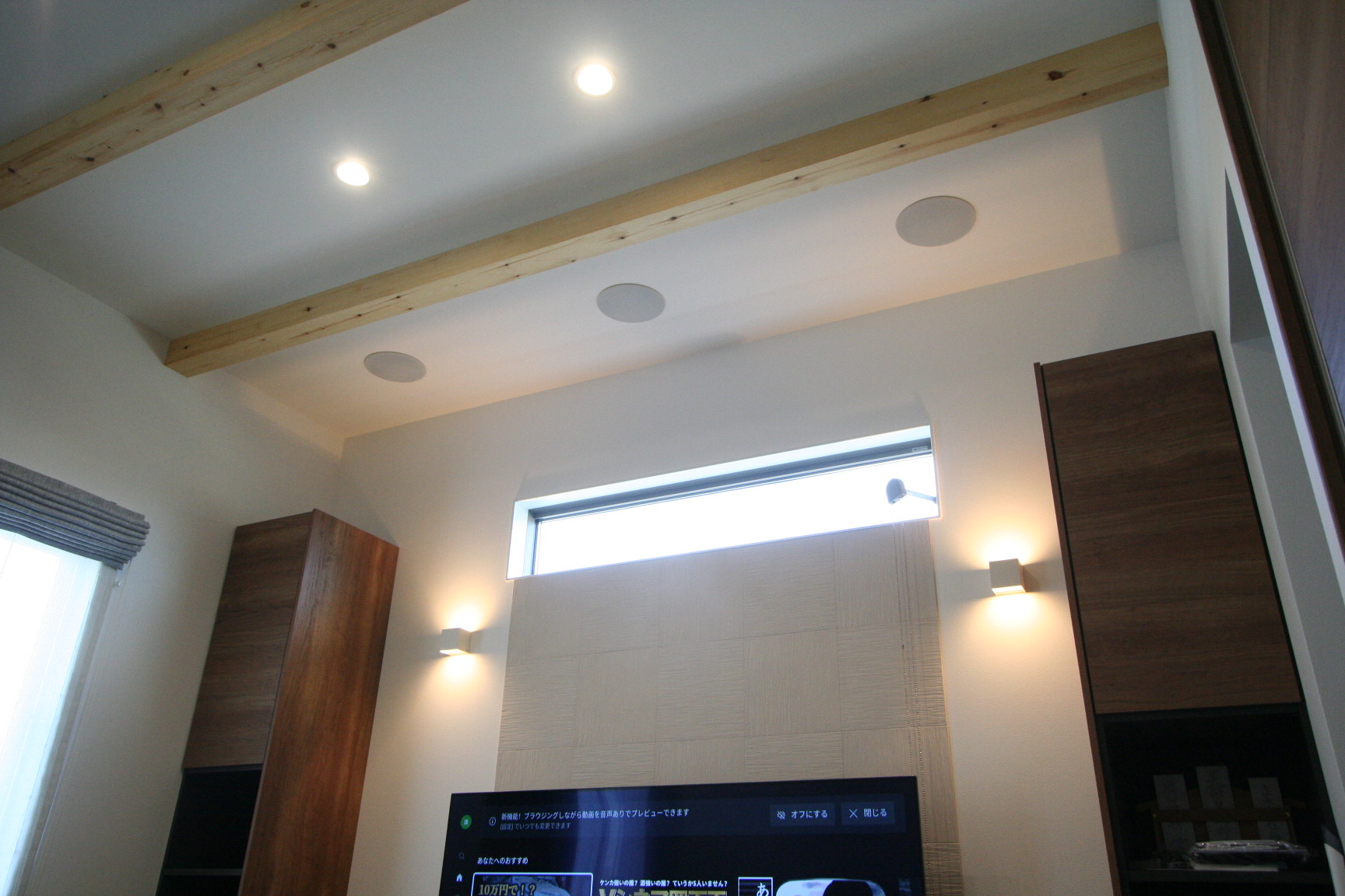 新築リビングルームに埋め込みスピーカーを利用したテレビシアターをインストール