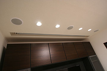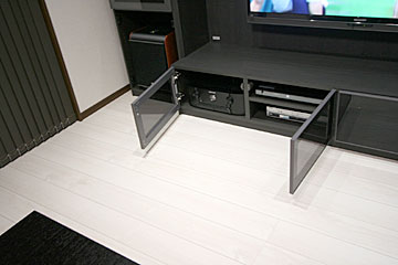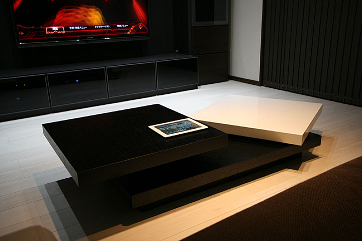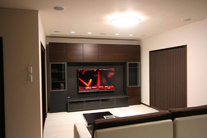 新築1Fにリビングルームに120インチスクリーン、7.1chスピーカー、3Dプロジェクター、iPadコントロールシステム等をインストール。 ホームシアターフィアル67号掲載