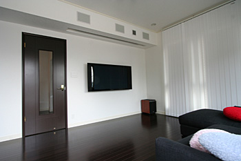 新築1Fリビングルームにホームシアターをインストール。