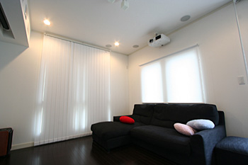 新築1Fリビングルームと2F寝室にそれぞれ本格的な7.1chシアターをインストール。