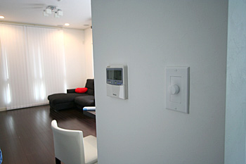 リビングから繋がるキッチンにもBGM用のスピーカーを取付け、壁面のボリュームでコントロールできます。