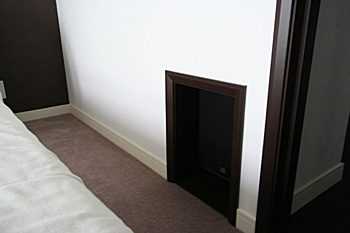 電動スクリーン、壁掛ディスプレイ、スピーカーは埋込みを選択し、生活空間を損なう事なくホームシアターを取付けております。
