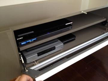 機材は収納家具の中にスッキリと納めてます。