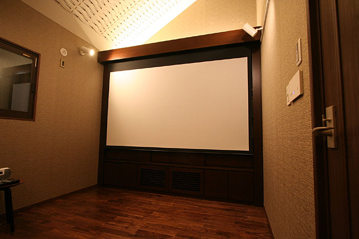 新築2Fの趣味の空間にクリーン、7.1chスピーカー、プロジェクターなどのホームシアターをインストール