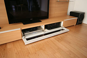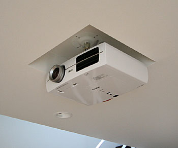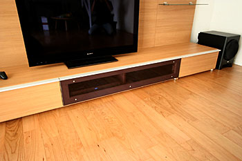 新築1Fのリビングルームに100インチスクリーン、5.1chスピーカーシステムなどインストール。