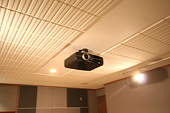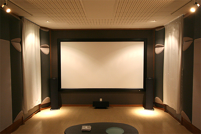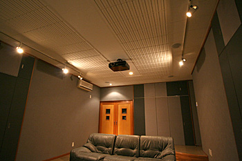 1Fのシアター専用ルームに120インチスクリーン、プロジェクター、7.1chスピーカーなどをインストール