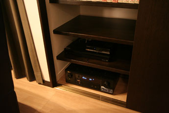 サブウーハーはフロアにおいていますが、構造上のデッドスペースにうまく収まりました。