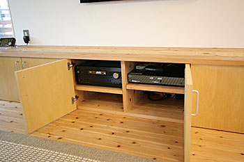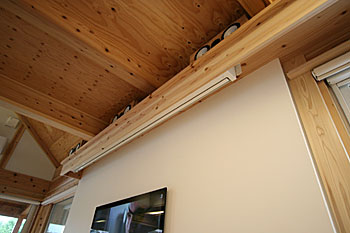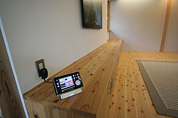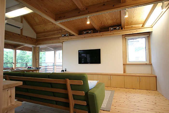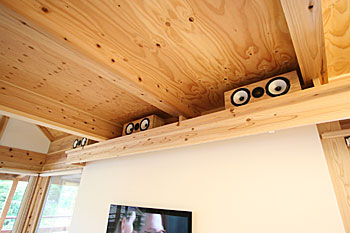 新築2Fリビングインストール。100インチスクリーン、壁掛TV、5.1chスピーカーシステムなどをインストール。 ホームシアターファイル63号掲載