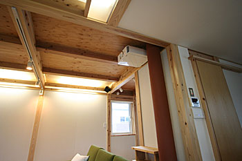 新築2Fリビングルームに100インチスクリーン、壁掛TV、5.1chスピーカー、アンプ等をインストール。