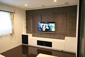 統一されたリビングルーム100インチスクリーン、5.1chスピーカー、プロシェクターなどのホームシアターシステムやマルチルームスピーカーをインストール。