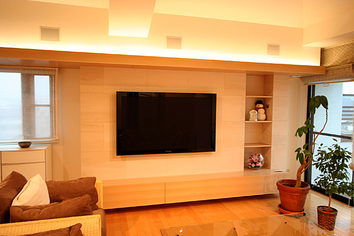デザインマンション、リフォームを機会に60インチプラズマモニター、5.1スピカーシステムなど、ホームシアターをインストール。