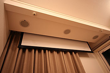 電動スクリーン利用、フロントピーカーは埋込みタイプ。
