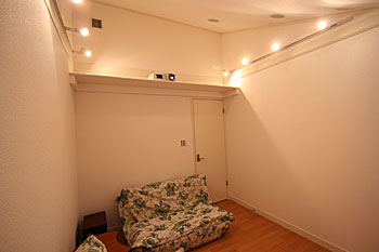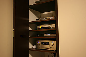 こちらはシアタールームとなりの寝室、今回は機材のすべてをこちらに納め、シアタールーム、1Fのプラズマテレビなどに配信するマルチルームシステムとなっております。