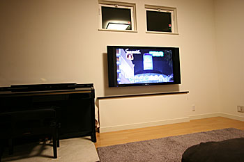 1Fリビングにはプラズマテレビを壁掛け設置。もちろんこちらでもシアタールームと同様全ての映像ソースが楽しめます。