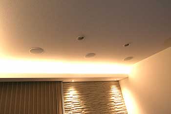 スピーカーは天井に埋込み、間接照明が奇麗ですので目立つ事なく良い音を奏でています。