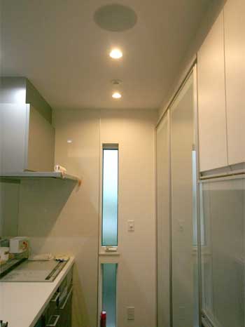 キッチンにもスピーカー&ボリュールを取付け、リビングと同じ音や別に好きな音楽を流す事が出来ます。