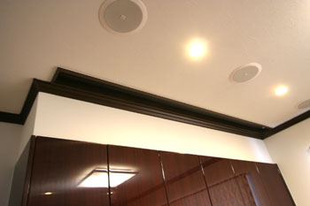 スピーカーは埋込みタイプ、スクリーンは天井ボックスへ、プロジェクターは天吊り設置です。