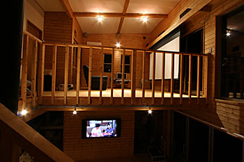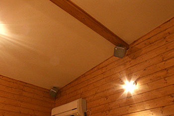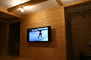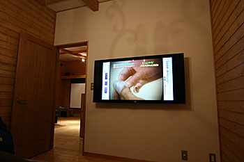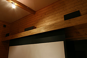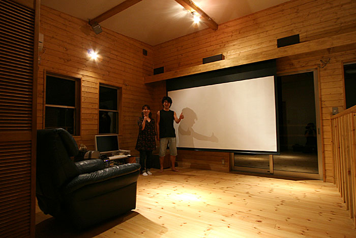 ログハウス調の新居にホームシアターをインストール 110インチスクリーン、プロジェクター、プラズマテレビ、7.1chスピーカーシステム、Blu-ray、システムリモコンなどをインストール。