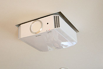 新築1Fリビングに120インチスクリーン、TV、7.1chスピーカーシステムなどのホームシアターをインストール。