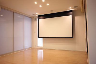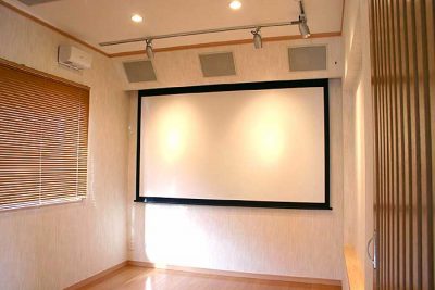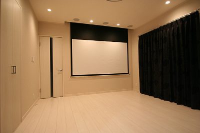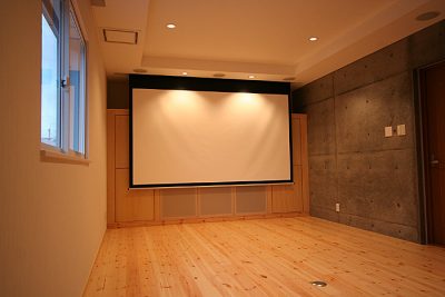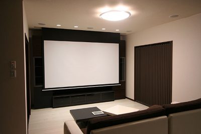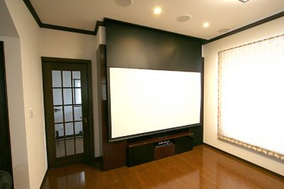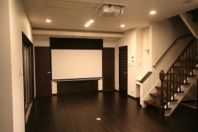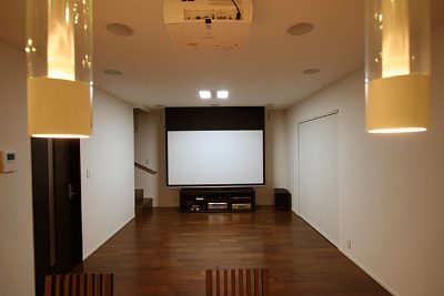 新築の2階に100インチスクリーン、7.1chスピーカー、プロジェクターなどをインストール。