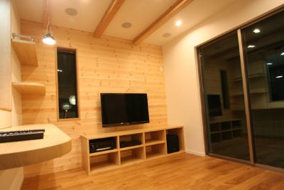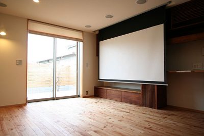 新築1階にシアタールームを設置。すべてを隠すインウォール型