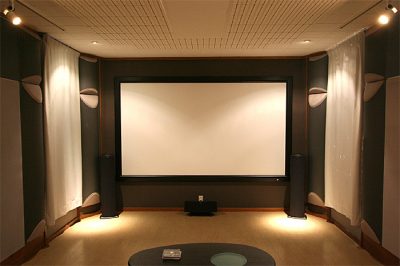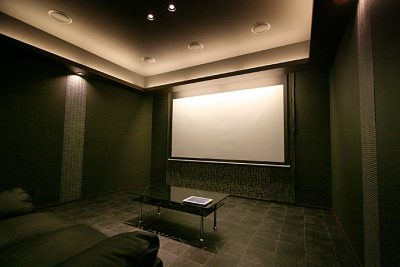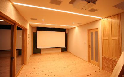 防音、調音にもこだわり、100インチスクリーン、プロジェクター、壁掛TV、7.1chスピーカーシステム、iPadコントロール等をインストール。