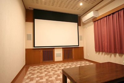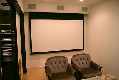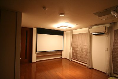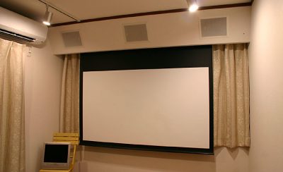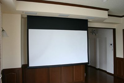 「プロジェクター、電動スクリーン、7.1chスピーカー、AVアンプ、DVDプレイヤー取り付け」