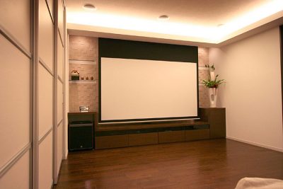 「プロジェクター、電動スクリーン、5.1chスピーカー、AVアンプ等のインストール」